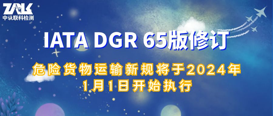 The International Air Transport Association (IATA) issued the 65th revision of the Dangerous Goods Code (DGR), which will take effect on January 1st, 2024.